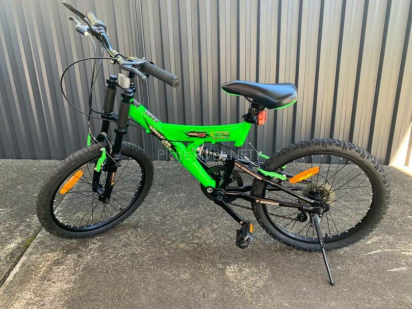 This 20 inch off-road kids bike has dual suspension, front and center, and a 7, multi-speed gears in the real.